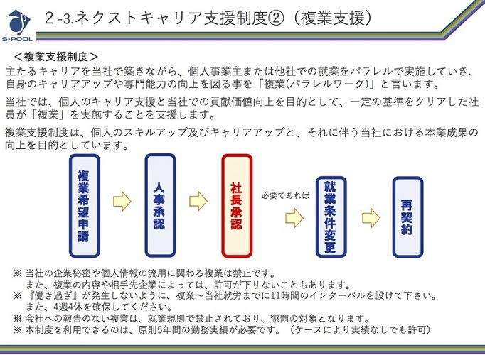 そんな想いから、エスプールでは2018年、複業制度を策定しました。社内申請が通れば、誰でも複業ができる許可制となっています。