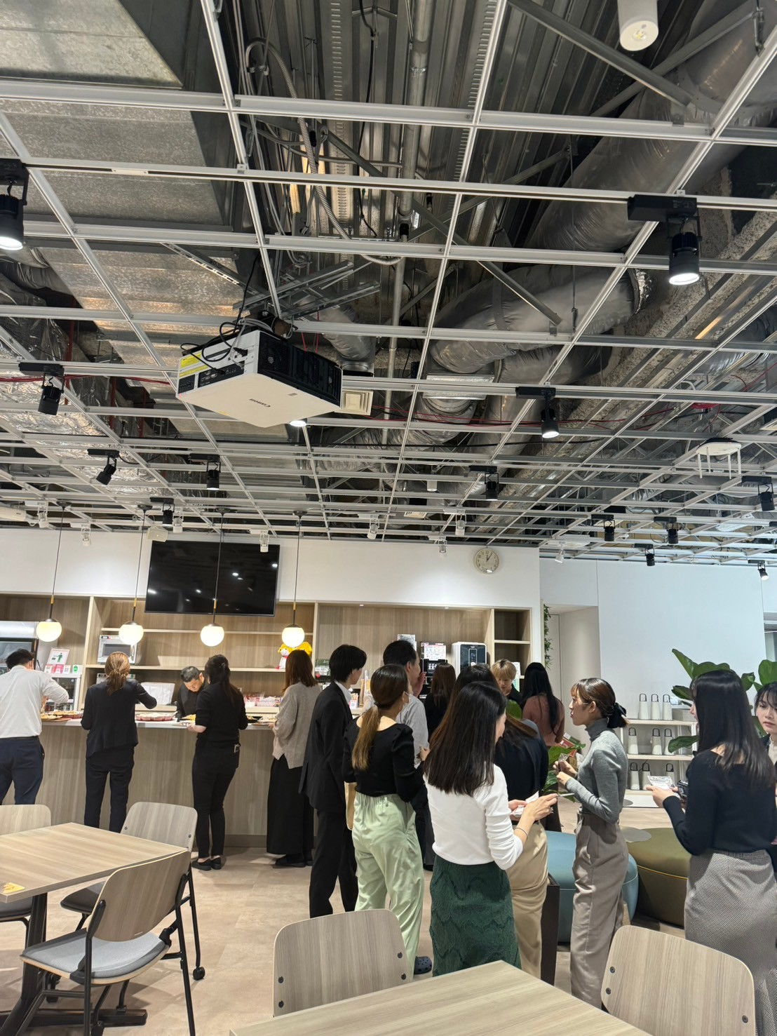 11時のオープンに合わせて多くの社員が並び、6階のスペースは大盛況でした!
