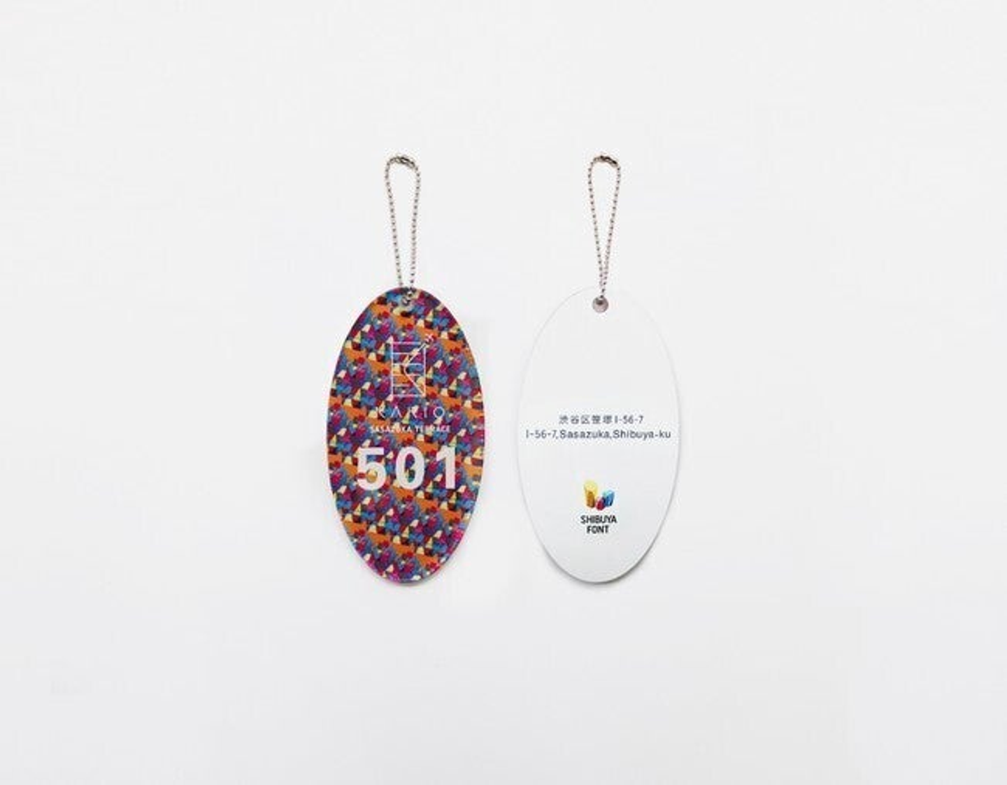 また、渋谷区の障がい者と学生が共同で制作した障がい者アート(シブヤフォント)をルームキーホルダーに採用しています。(サイズ タテ80mm×ヨコ43mm)