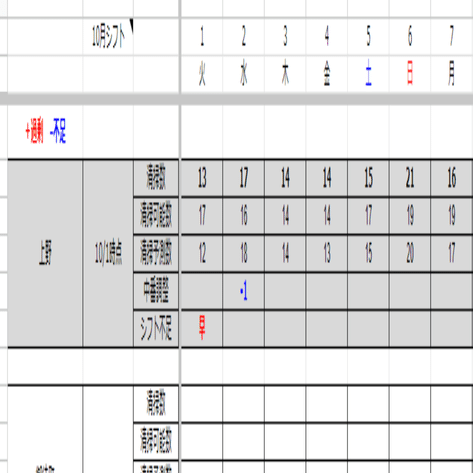 シフト・清掃管理 管理表イメージ