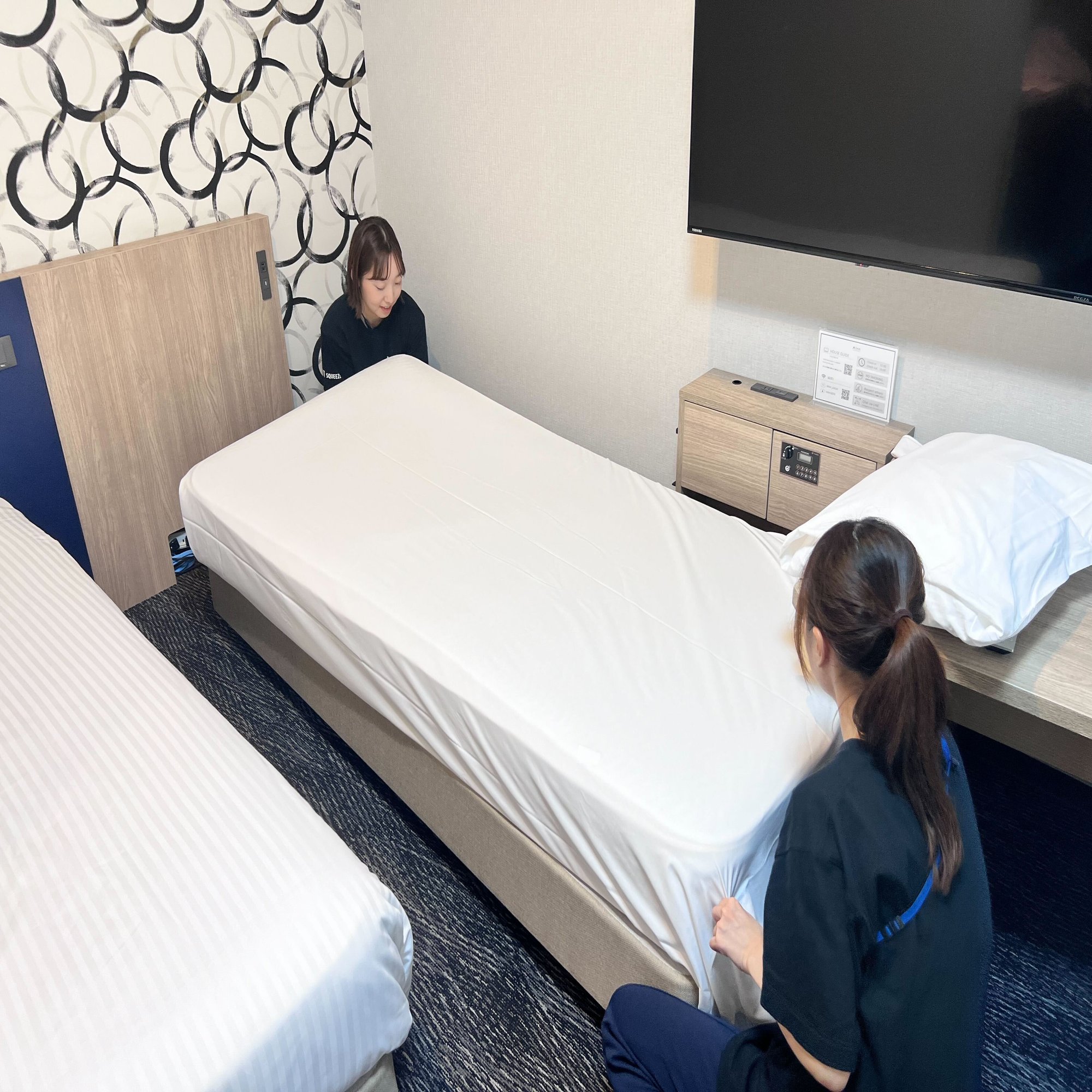 SQUEEZEでは、施設運営のリーダーを「VMDL(ビジュアルマーチャンダイジングリーダー)と呼んでいます。日々のお客様対応・施設管理業務において、商品となるホテルの客室を作り上げ、品質を保つうえで重要な役割を担っていただいていることから、このような呼び方をしています。