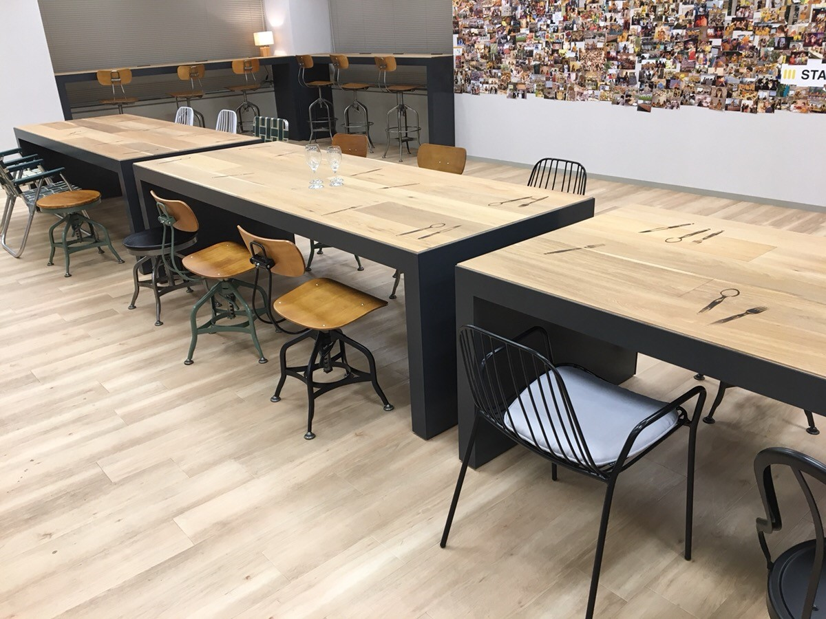みんな「食」に興味があり、いい素材をもっている人が多いなという印象があった(上から目線でごめんw)ので、それらを自然発生的に掛け合わせられる場所があったらいいなって。なので、社員同士のシナジーがあがる場所、部署間が会話をする場所、集まれる場所をつくるっていうのが今回のテーマになりました。社員同士がもっとこう「わいわい」「にぎにぎ」した感じになったらいいなって。