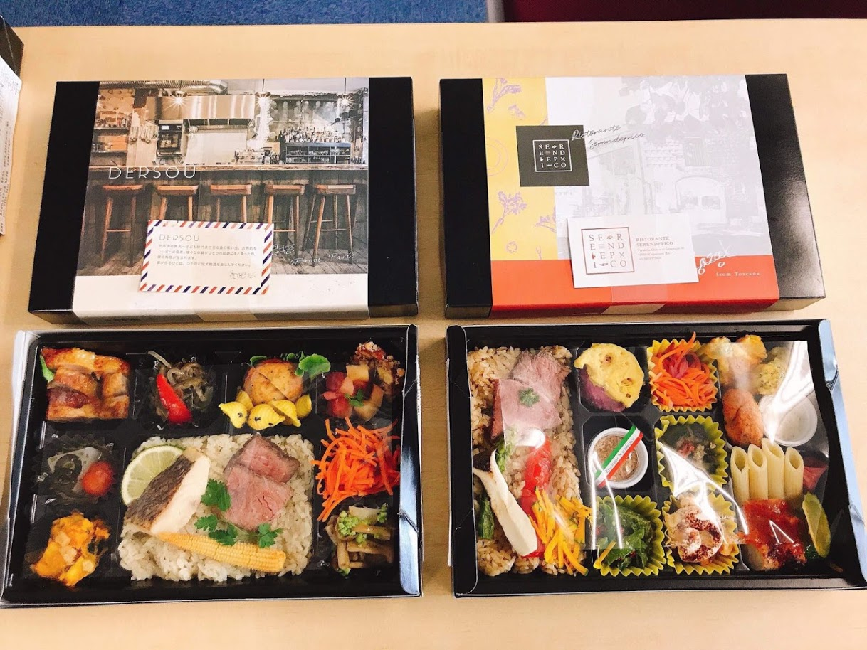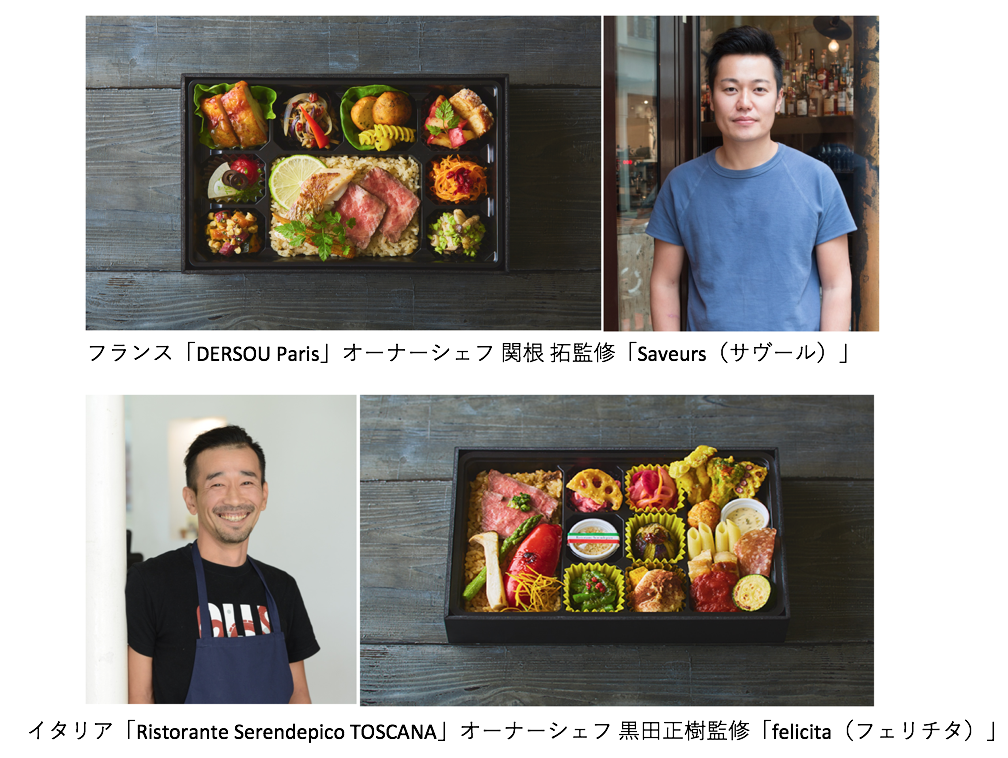 そのお弁当が、今回の共食会で提供した【関根 拓監修】DERSOU Paris「Saveurs(サヴール)」と【黒田 正樹監修】Ristorante Serendepico TOSCANA「felicita(フェリチタ)」です。