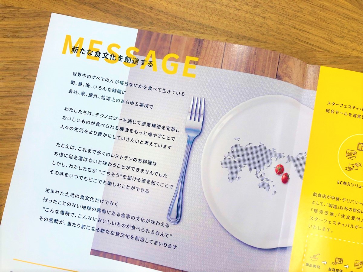 スターフェスティバルは、「新たな食文化を創造する」というビジョンのもと、「ここでしか食べられない料理が いつでもどこでも味わえる」世界観を目指しています。