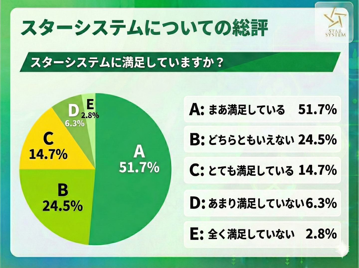 総合的にスターシステムに満足しているかを尋ねたところ