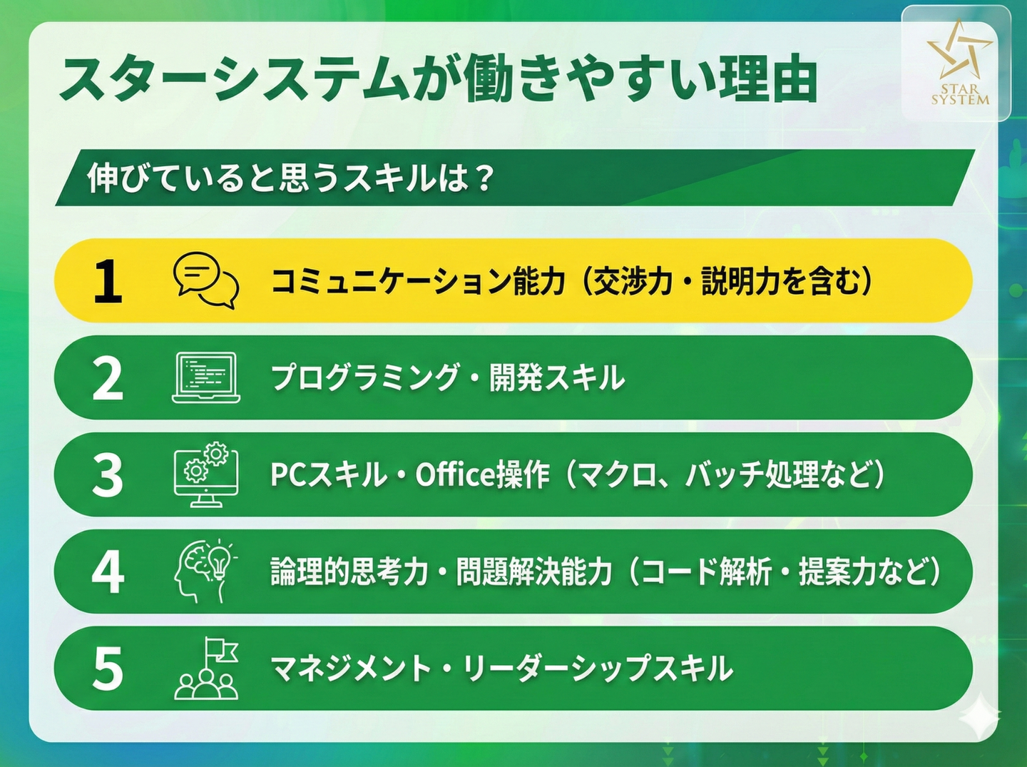 成長スキルと資格から見るスターシステム社員