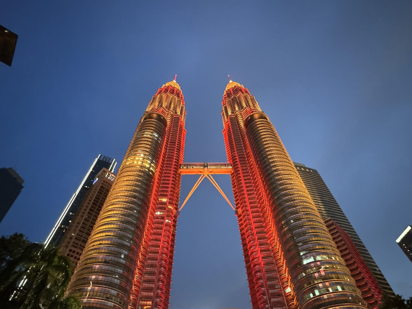 ペトロナスツインタワー 言わずと知れたマレーシアの象徴ともいえるタワー!わたしは毎回見るたびにそのキラキラな外観に感動してしまうのですが、今回もやはり綺麗でした!近くにはツインタワーを眺めながらご飯やお酒を楽しめるレストランやバーがあるのでぜひ!ちなみに、祝日や記念日の際はライトアップの色が変わったりするんですよ!