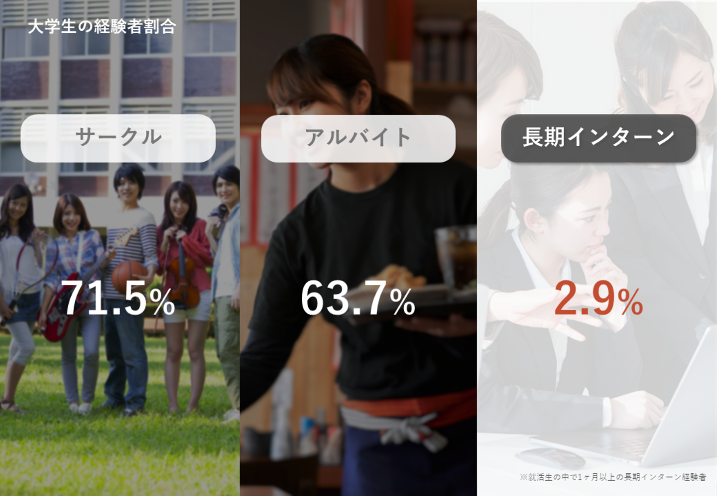 しかし、いまだに長期インターン経験者は就活生の約3%、導入企業も0.4%程
