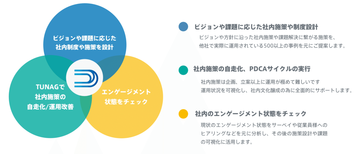そこでTUNAGは、ツール提供だけではなく、「エンゲージメント経営を実践するための支援サービス」へと発展します。