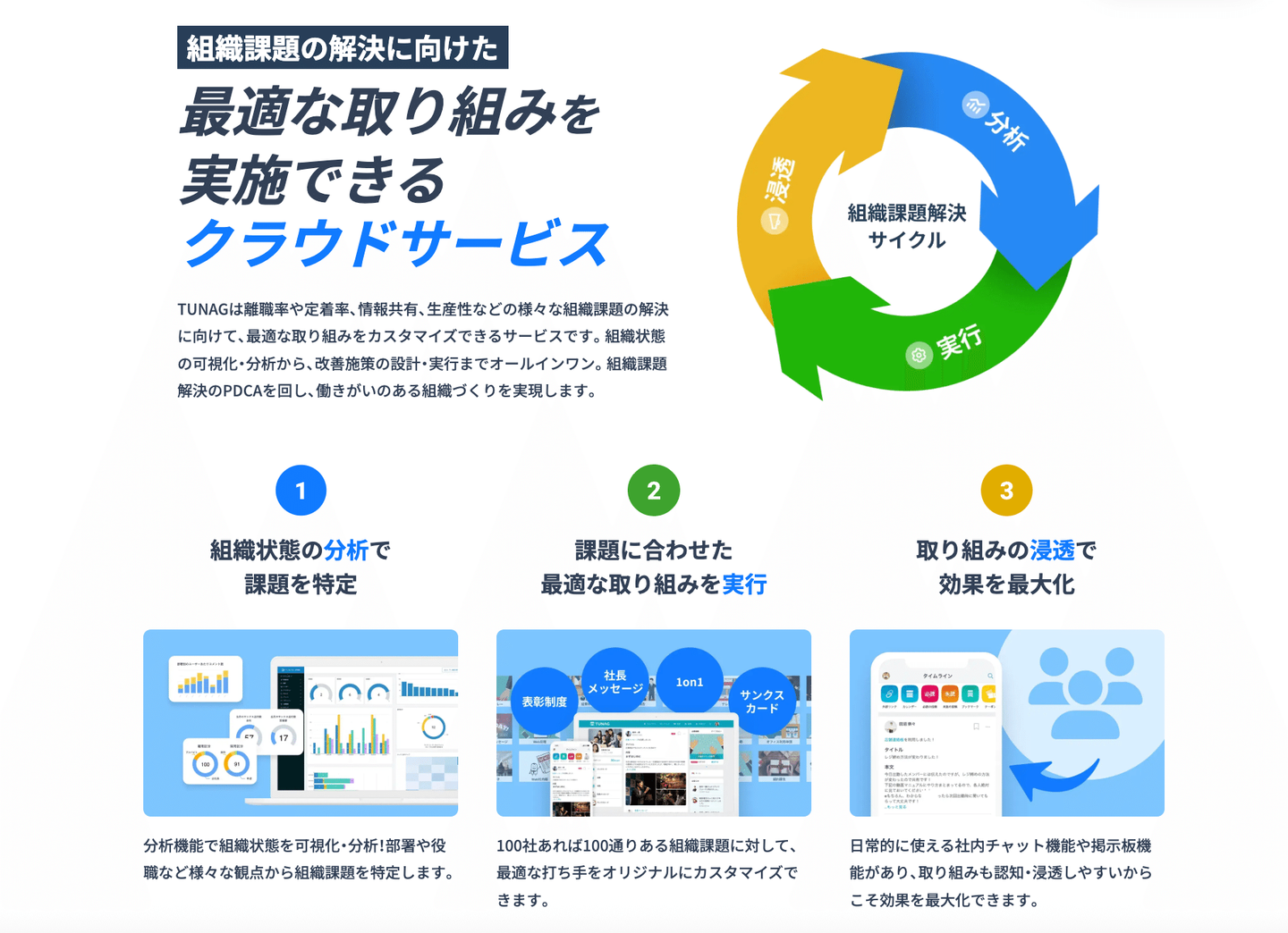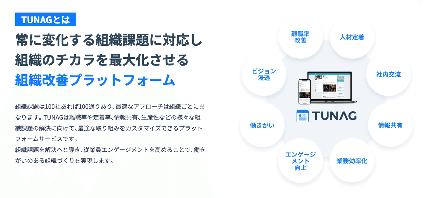 この“伴走と自走の循環”を支える仕組みを整えたことで、私たち自身も「エンゲージメントを高めるなら、TUNAGひとつで」と言えるような、複合型の組織改善プラットフォームとして歩みを続けています。