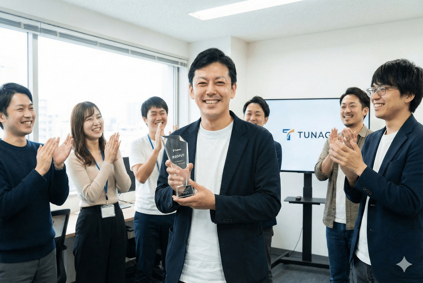 ※こちらの画像もAI生成です!TUNAGのロゴは違うけど、顔はめっちゃ似ている(笑)