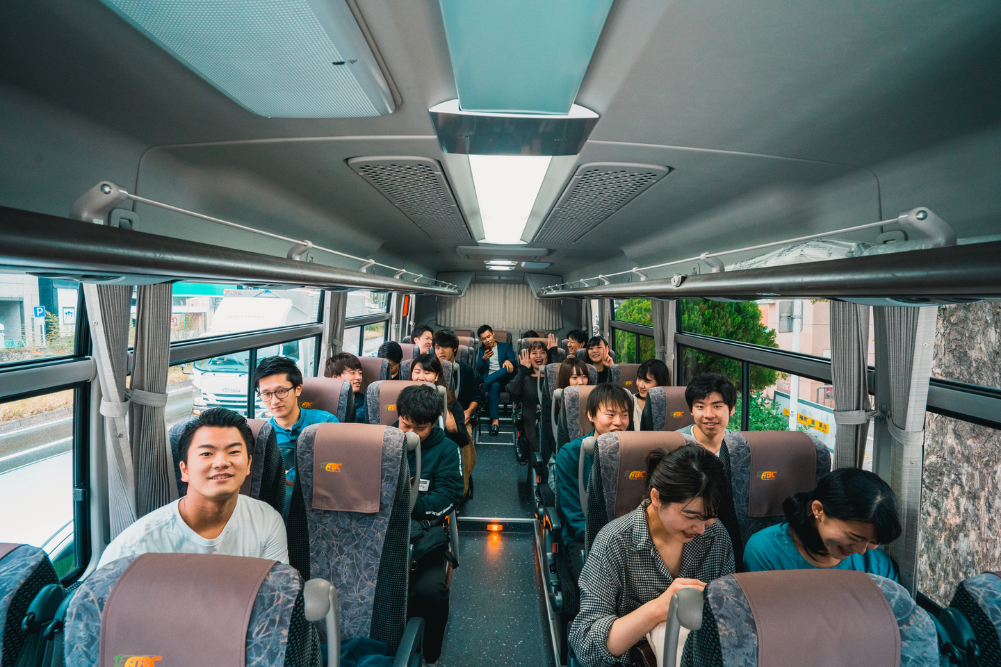 その結果、各エリアの1位のチームと、個人賞に輝いたメンバーへの賞品として用意「バス旅行」を用意しました。対象メンバーに名古屋に集まってもらい、バスを貸し切って、みんなでご褒美レクに出かけて来ました。