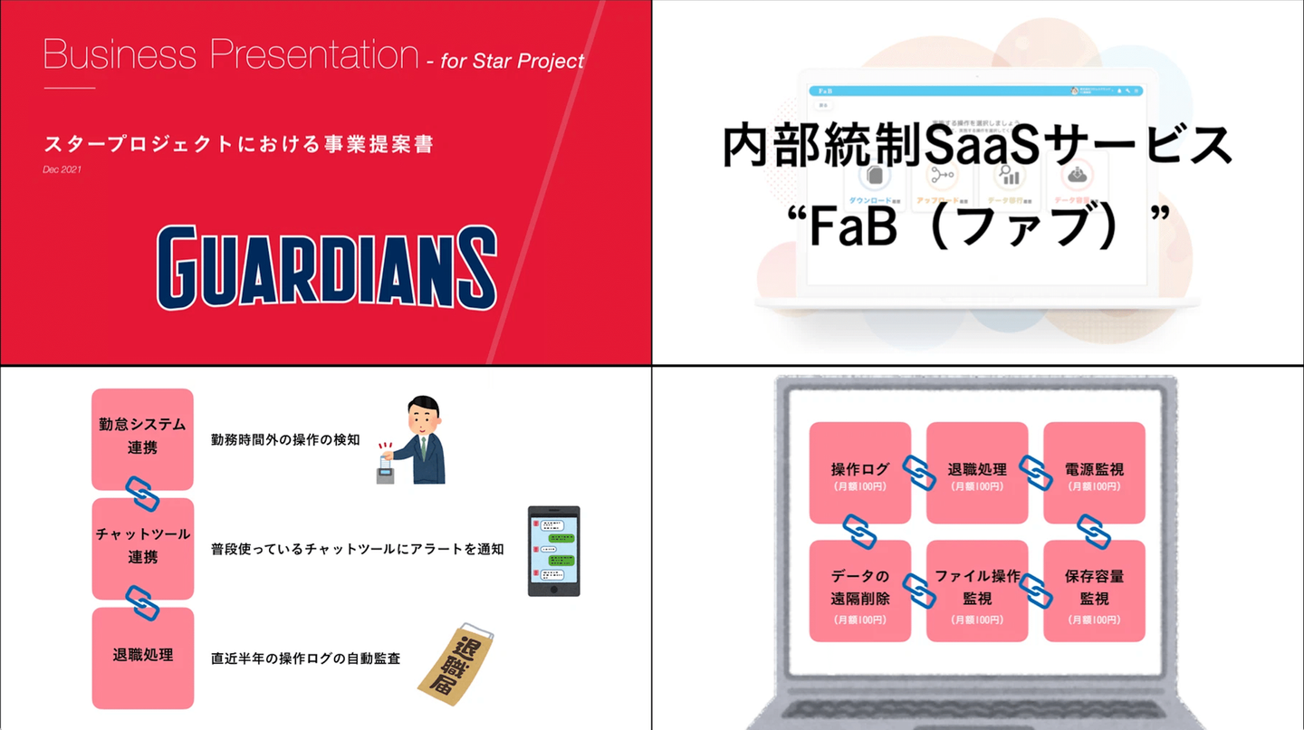 このサービスは、2021年末のスタプロから生まれました。 従来のセキュリティサービスは、パッケージ化された商材が多く、「1機能でいいんだけどな…」という中小企業のニーズを捉えた、手軽で低価格なセキュリティ対策のニーズの高まりを察知し、事業化しました。