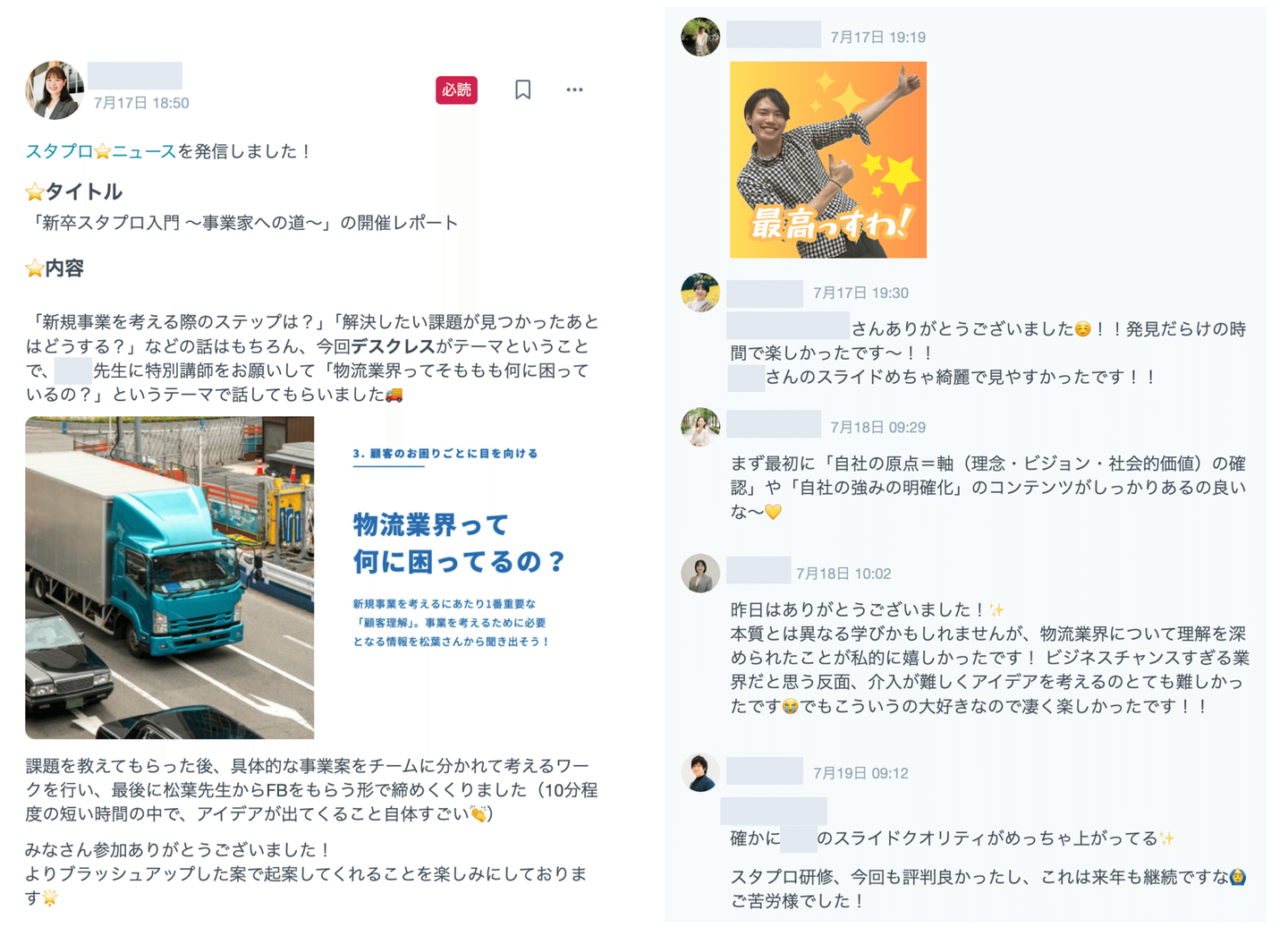 実施後には社内共有も行い、スタプロを全社で盛り上げてます💪