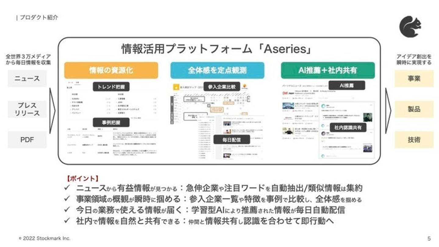 ストックマークのプロダクトとサクセス活動を通じて、これまで個人で閉じていた情報収集が、チームに気づきを共有することで始めて組織として外部情報の資源化が行われるようになっていきます。