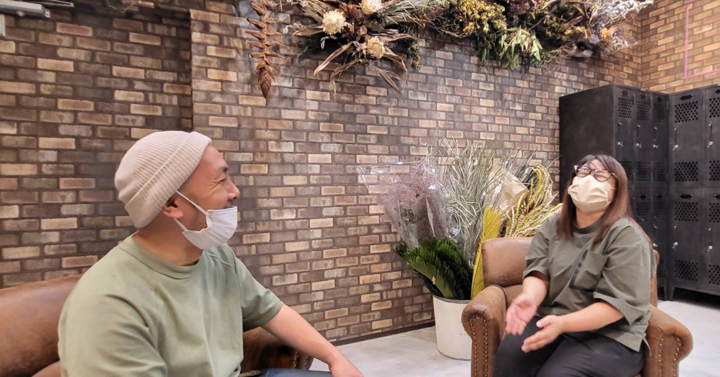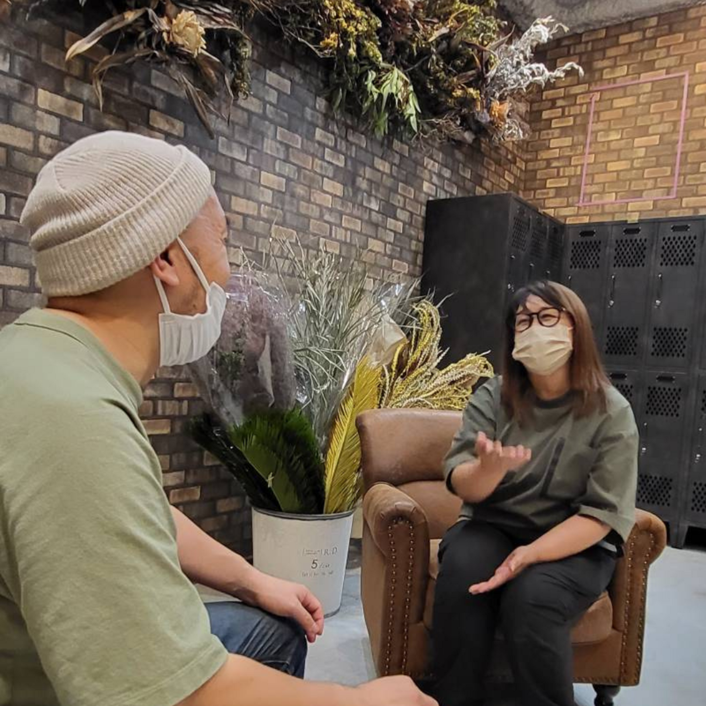 今回のアートに込めた思いやドライフラワーの特徴などをJAM八王子の運営担当のヘアサロンnewi八王子店の店長宮澤岳大さんと対談いたしました。