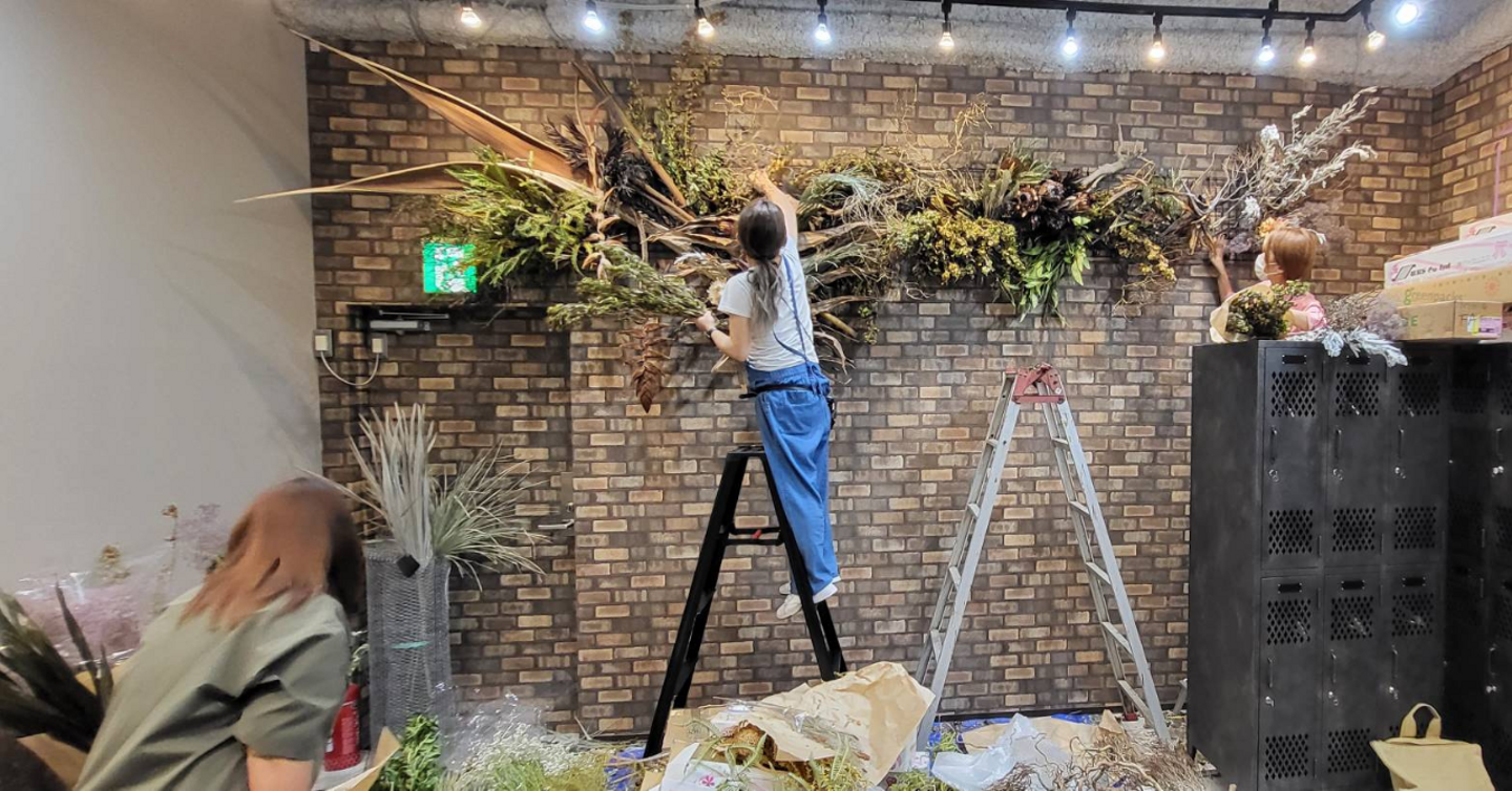 お花を使った空間装飾をメインにしているので、映画やCMの背景にお花を使った空間デザインをしてます。ドライフラワーだけでなく生花も扱ってますし、最近ではドライガーデンも手がけましたね。