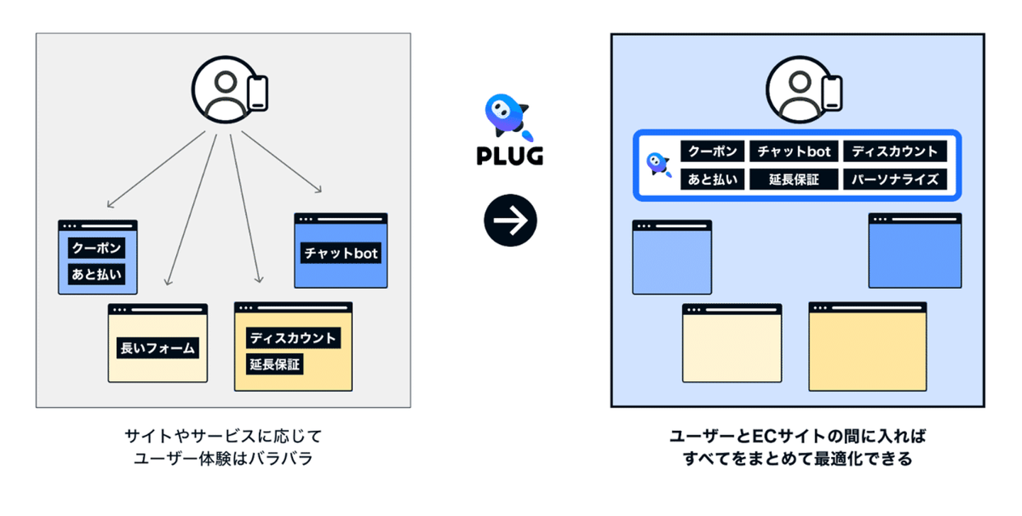 PLUGはユーザーとECサイトの間に存在する「エージェント」です。