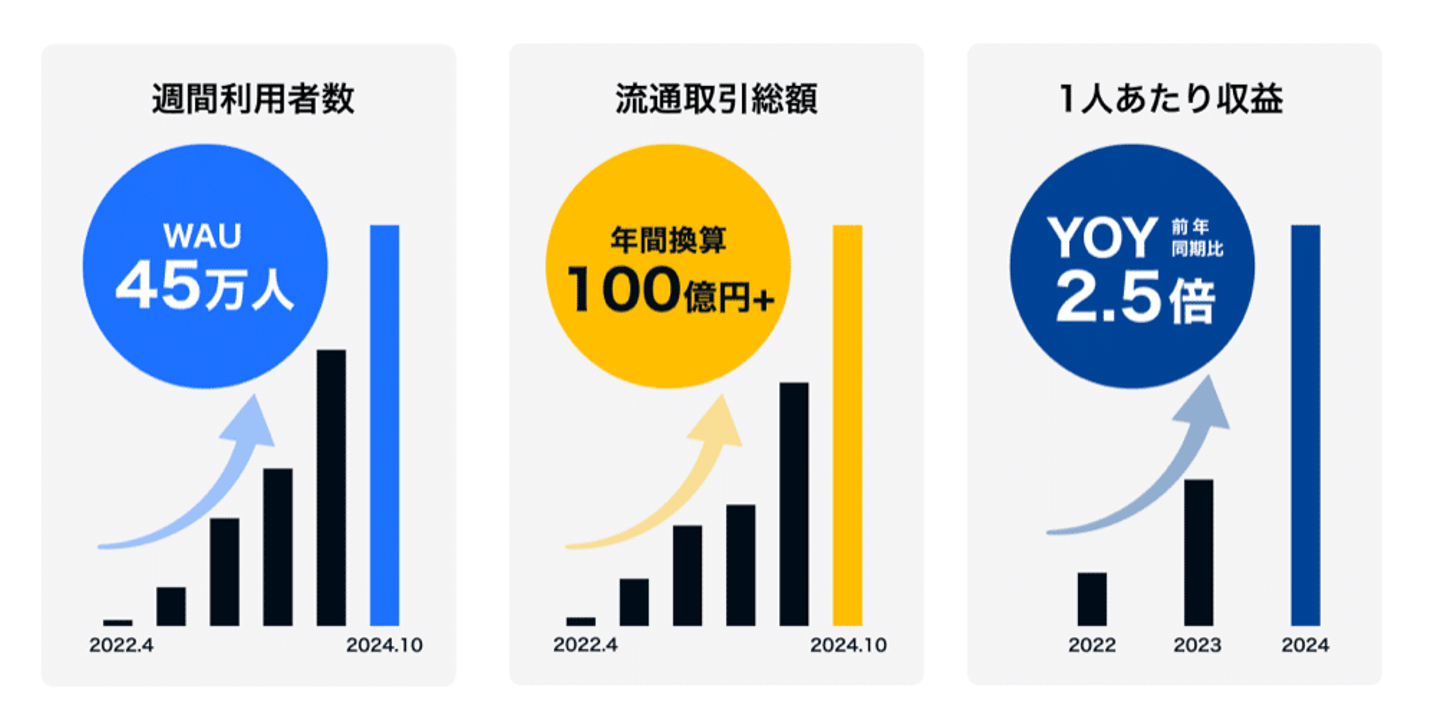 紆余曲折を経て、2024年11月現在、PLUGは累計130万ダウンロードを突破し、週間アクティブユーザーは45万人を超えました。また、PLUG経由の流通総額は年間換算で100億円を超えるペースに成長。提携先のECサイトも国内で1100社を超え、前年比3倍以上の成長を遂げています。