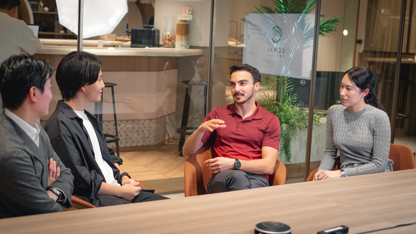 今回、Coral Capital Founding Partner & CEO・James Riney氏とSenior Associate・嘉陽ティファニー氏、弊社代表・伊藤と取締役・大川との対談を行いました。