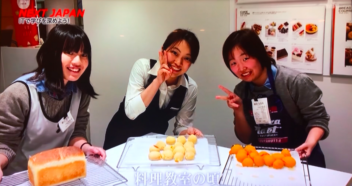 ▲料理教室で先生として働いていた時の様子(写真中央が菊池)