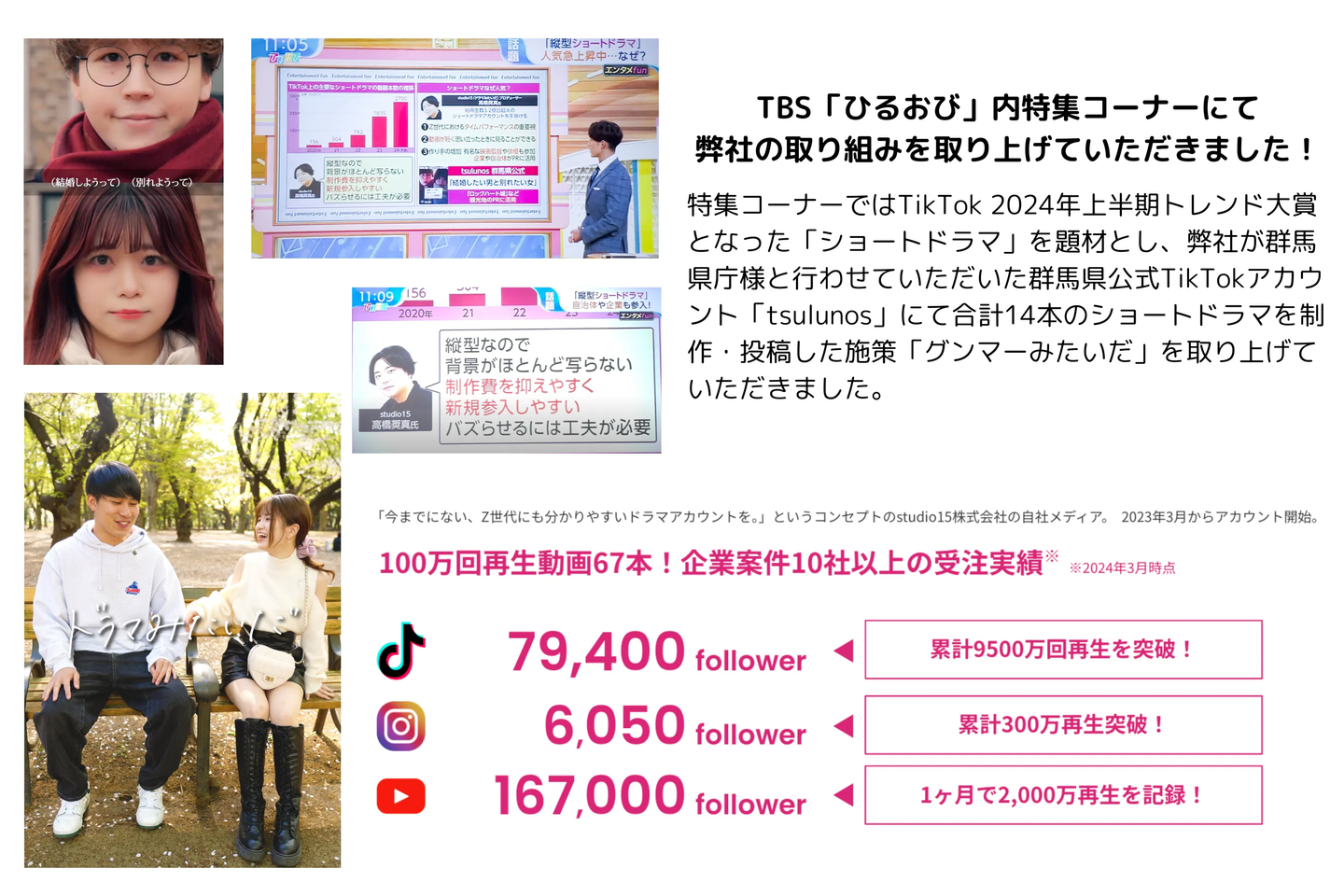 こんにちは!TikTok総合代理店のstudio15株式会社のマーケ担当です。