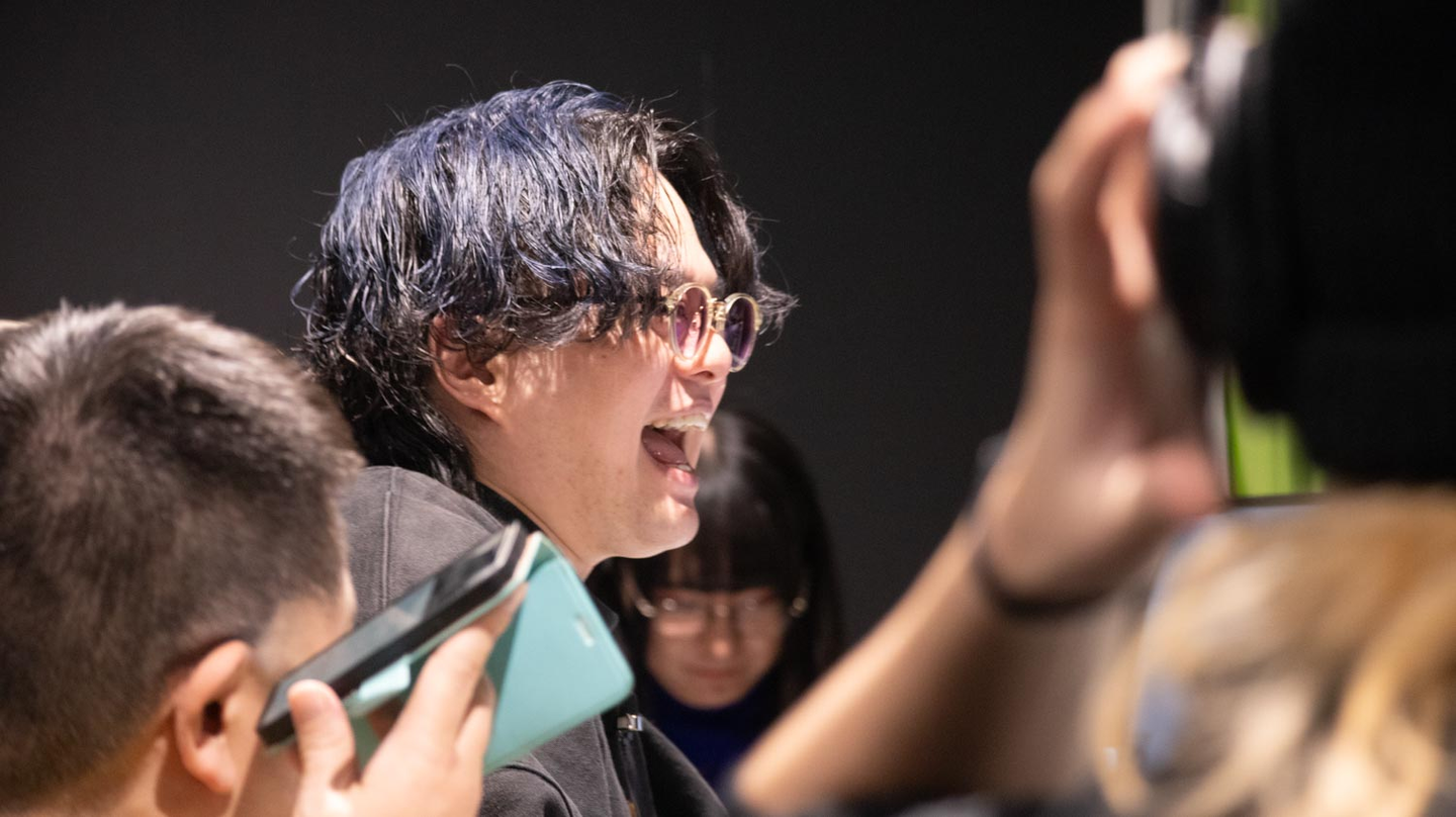 そして、いよいよアクタースーツの装着へ。 女性スタッフの指導を受けながら、自らスーツを着ることに挑戦したものの、なかなか難航…。 なかなか更衣室から戻ってこず、関係者一同が心配する中、ようやく着用を終えて帰還! 「これは大変でした…(笑)」と笑いながらも、しっかりと準備を整え、本番に臨みました。