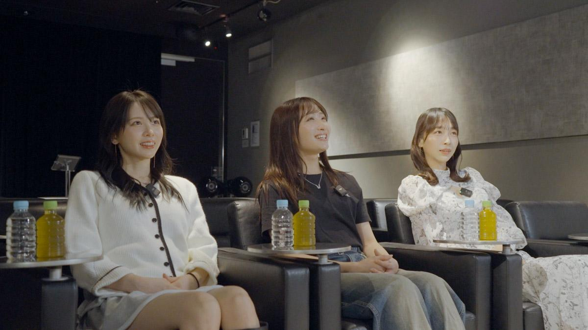 彼女たちが共演した作品のシーンを目の前にしながらの上映会は、単なる試写会とは一線を画す特別なイベントでした。狭い空間に幼馴染役キャストだけが集い、感情が爆発するリアルな反応の連続。時に悲鳴があがり、鋭いツッコミや「ここはこうだったよね!」という熱い意見交換が巻き起こりました。