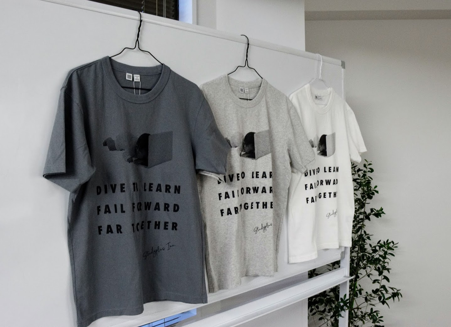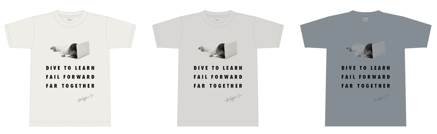 Dive to learn/Fail Forwardを意識して、PCに突っ伏した赤ちゃんの写真を選んでくださったそう。また、多様性を許容する・寛容な心を持つFar Togetherを意識して、Tシャツのカラーを三色にしたそうです。