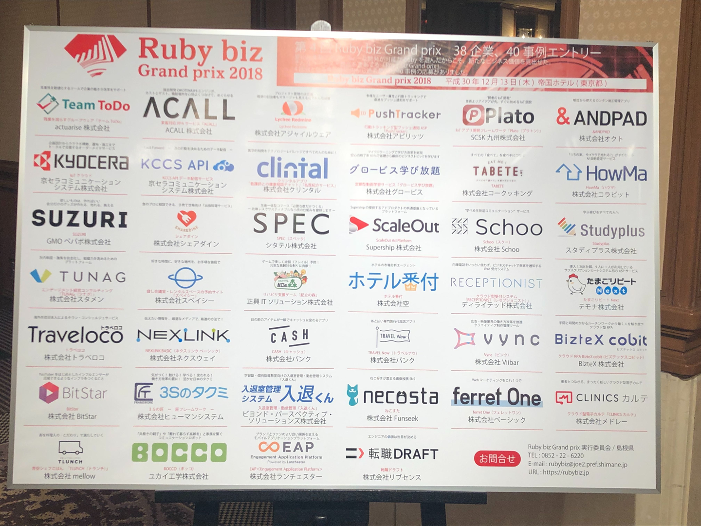 例えば、Ruby World ConferenceやiOSDC Japanといったカンファレンスへのスポンサーや、Rubyアソシエーションへの協賛など。その一環で、今回Ruby bizグランプリにエントリーしました。