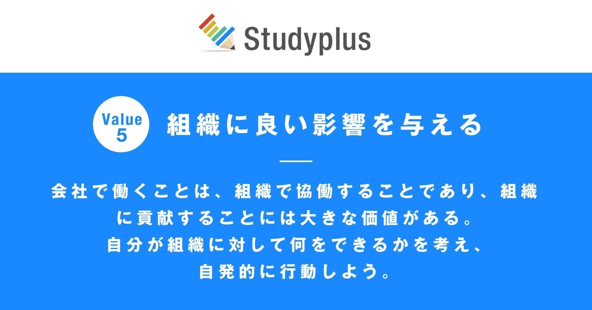 特に意識せず働いてるだけでも、一人ひとりは直接的・間接的に組織やチームになんらかの影響を与えてると思います。だからこそ、チームのアウトプットを最大化するような、良い影響を与えられる人はすごく価値が高いと思うし、みんなそのように行動してほしいという想いを「組織に良い影響を与える」に込めました。