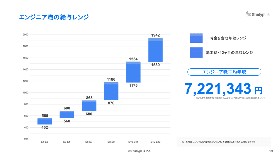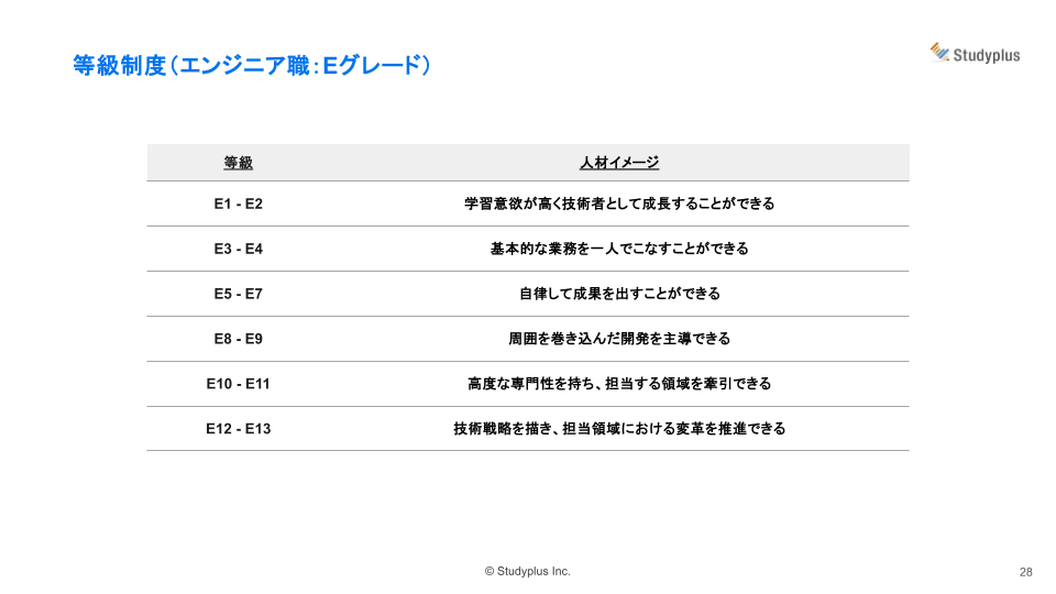 エンジニア職に、より高度な専門性が求められるとして、スタディプラスは等級テーブルと給与レンジの上方修正を行いました。エンジニアの技術力向上は会社の将来を担うと考えています。