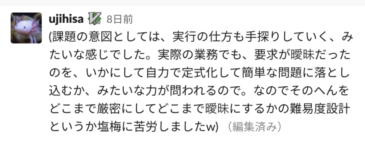 最後に、私の課題の回答をこっそり載せておきます... (あくまで回答の一例です!)