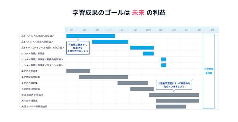 こと受験をベースとした学習サービスにおいては、短期的な動機づけではなく長期的に習慣化することが「内発的な動機」を持続させるポイントではないのでしょうか。