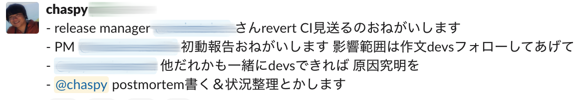 役割分担として最低3つあげましたが、ポストモーテムを書くひとを分けてもいいですし、個人的には指揮統率を取るひとが書いてもいいと思っています。