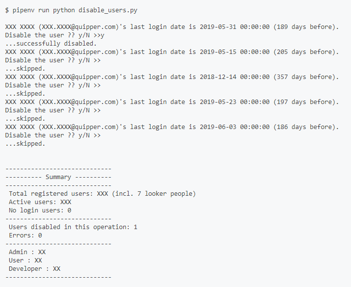 もともとは以前から公開されていた python_api_samples/disable_users.py at master · llooker/python_api_samples · GitHub を参考に開発したもので、今回の Python SDK リリースを機に各所を書き換えています。