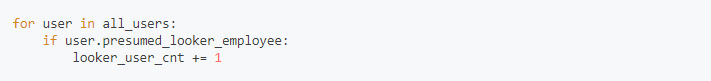 例えばこのリストをなめて下記のようにすると Looker 社側のアカウントかどうかを識別することが可能です。