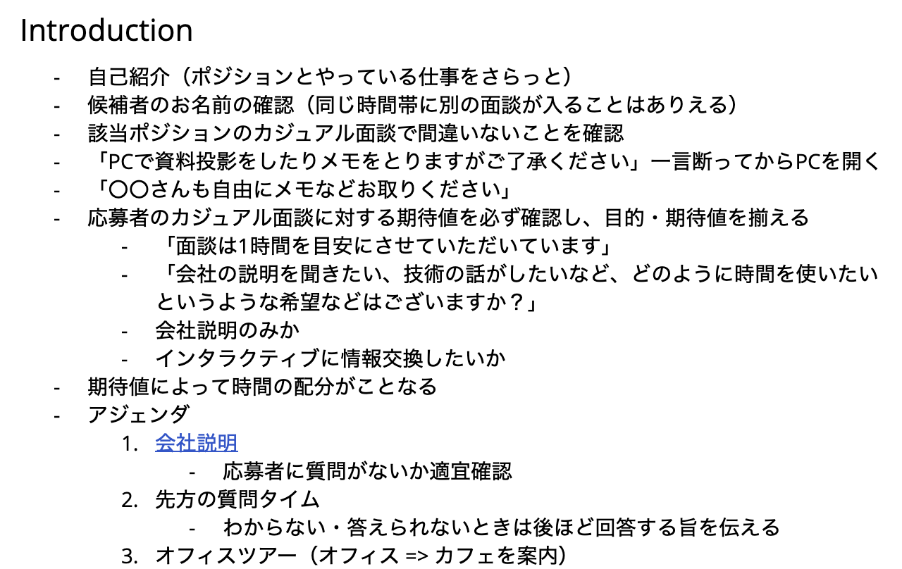 また、良い振る舞いや面談ベストプラクティスが発見されたらこのテンプレートに追記したりもしています。