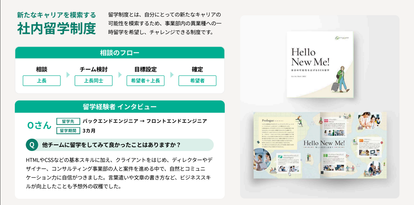 また、他チームでの業務を一定期間体験できる「社内留学制度」もあり、実際にそのまま留学先のチームへ配属されたメンバーもいます。