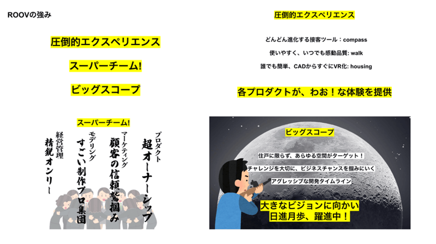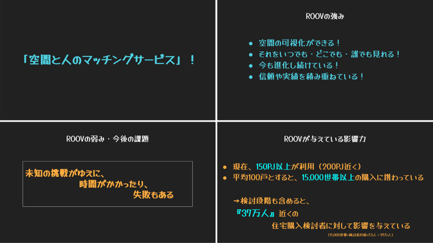 その後、ROOVの強みや今後の展望について、個性的な発表がありました。