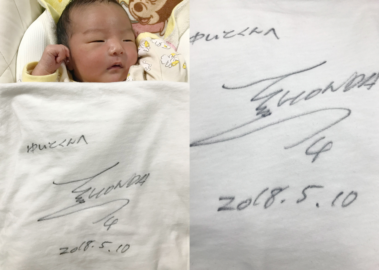 p.s. 最近産まれた我が子に、生まれてきて初めての最高のプレゼントが渡せました!当日着ていたTシャツにサインを書いてもらいました!たまたまその日に新品着てきてて本当に良かったです笑