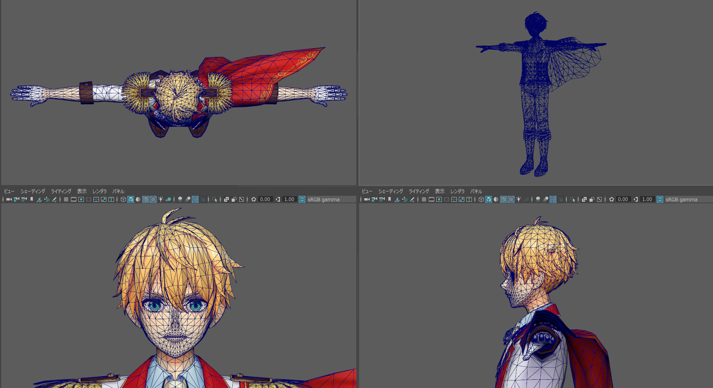 キャラクターの設定画に基づき3D化をします。今回は1万ポリゴン程度のゲームにおけるリアルタイム表示用モデルとして制作を進めていきます。
