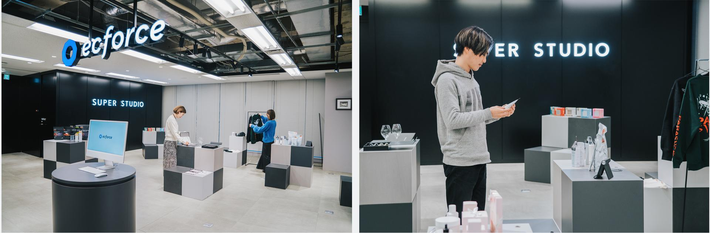 今回のリニューアル&増床では、社内だけではなく社外とのコラボレーションも目的として設計されています。社外向けショールームでは、弊社のECカートシステムであるecforceの導入ブランドのECサイトと商品を見て触れることができたり、弊社が描くecforceを使った理想的な商品の販売方法が体験できるようになっています。もちろん社内においても、クライアントや取り扱い商品、弊社製品について学ぶ場としても活用されています。今後様々な社外イベントも開催予定ですのでご期待ください!