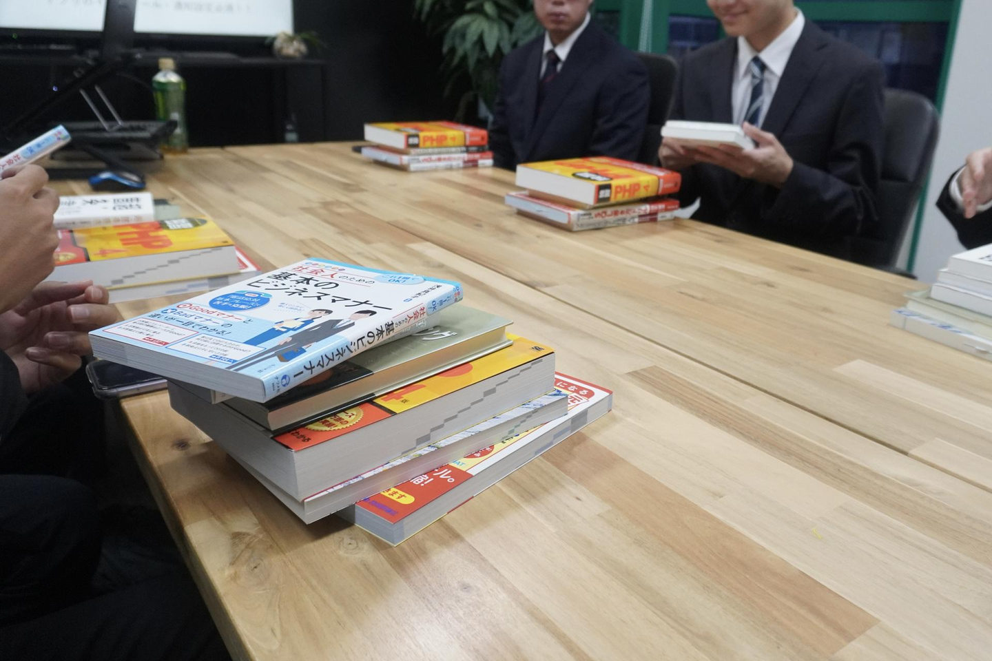 配られた内定者の皆さんは苦笑い…(気のせい??)でしたが、入社までにエンジニア・営業として働くうえでの基礎知識や考え方を少しでも学んでもらいたいという想いです…