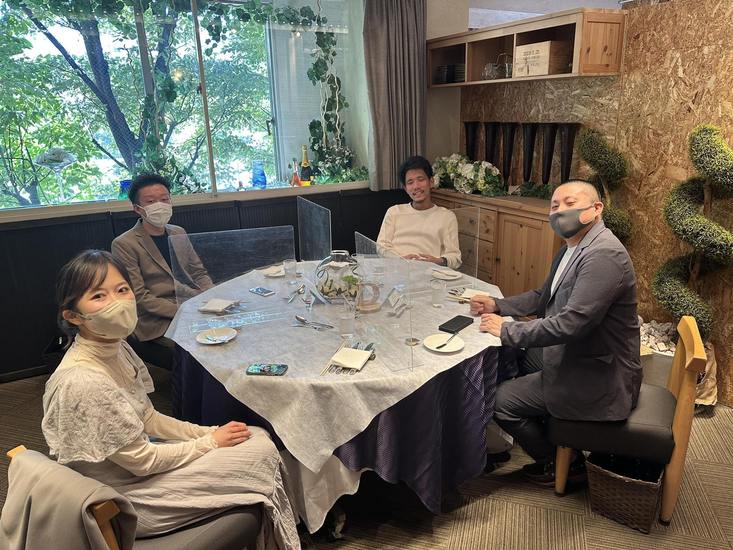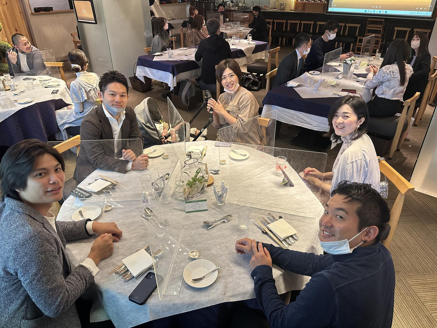 今年8月にオフィスを移転したことによってリモートワーク化がさらに進み、メンバーと対面にて話す機会も減ってきてしまっているということもあり、レストランを貸し切り、リアルにて行いました。