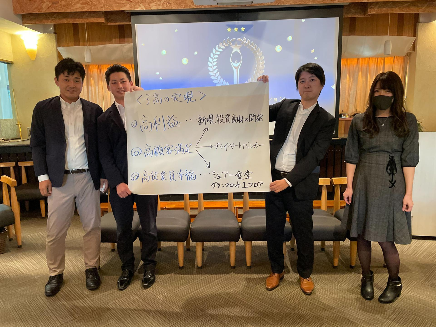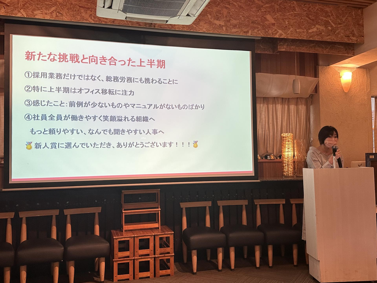 また、今回は司会の方にもお越しいただきました。前回の下期表彰式より更にレベルアップしたため、そわそわしてる社員が多かったように感じます(笑)
