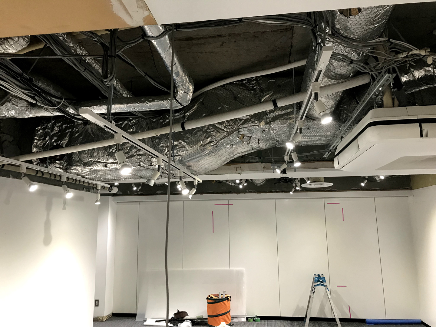 天井がむき出しになり、蛍光灯からスポットライトへ変更。