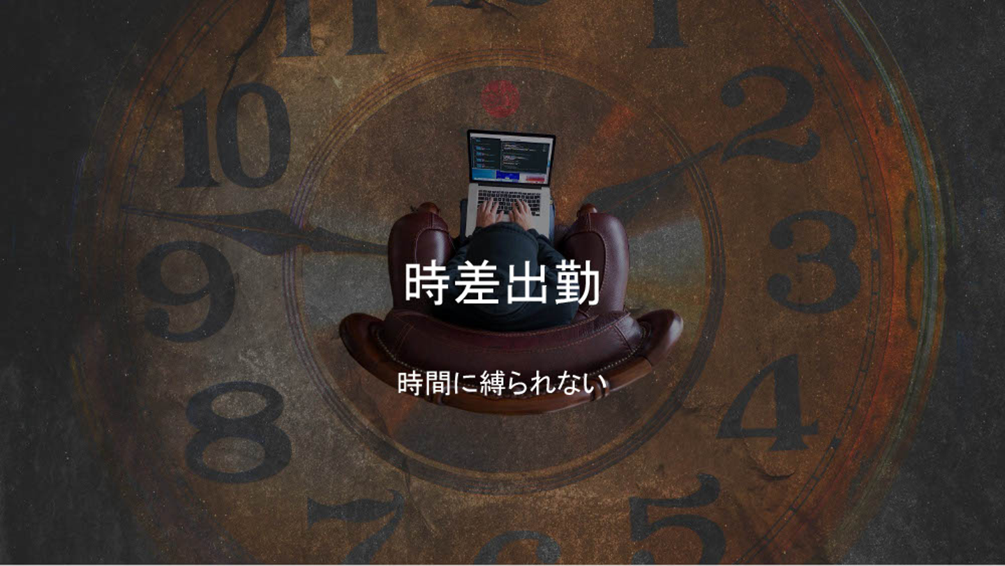 上記サークル活動の成果として、リモートワークや時差出勤制度導入を開始し、ITを駆使して個人が自律的に時間を有効活用しながら開発効率を最大化する取り組みを推奨しています。