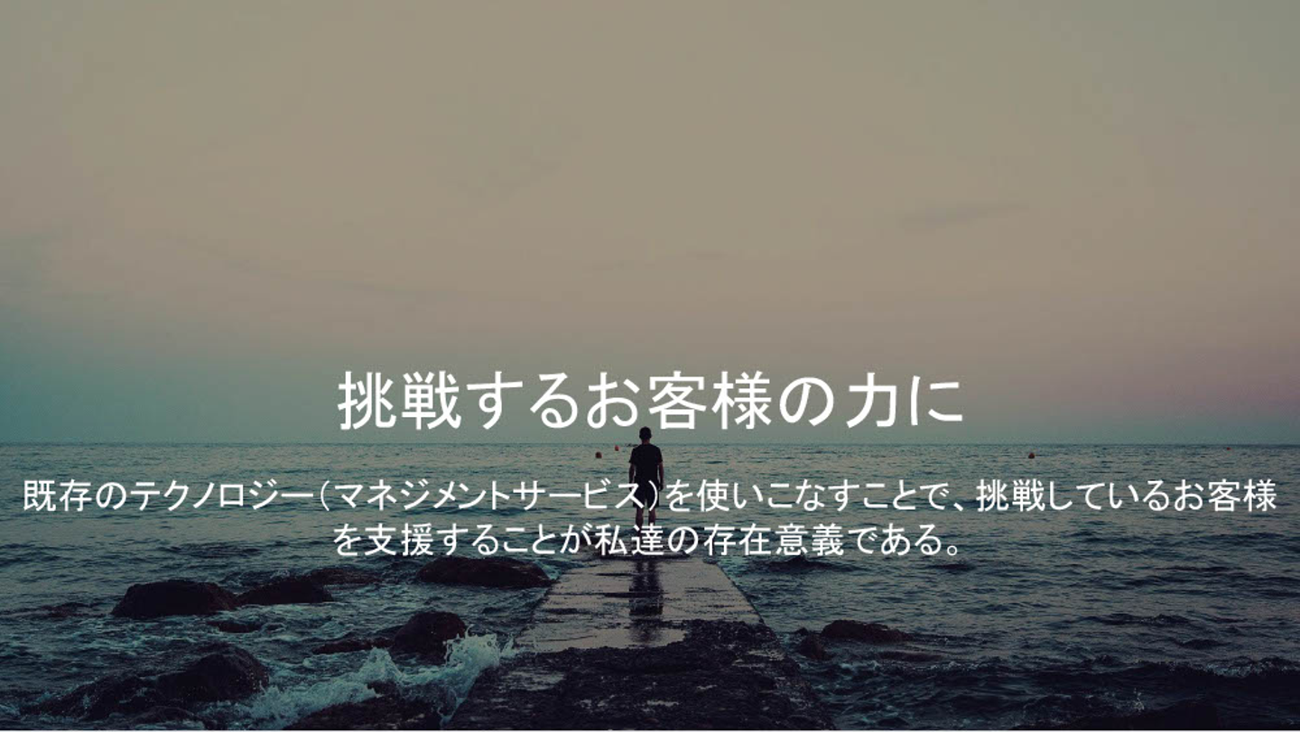 革新的な技術を貪欲に追求することで、それまで3日かかっていた業務を1秒で終わらせることができるようになるなど、システムという、まるで魔法のようなツールをお客様に届けることによって「挑戦するお客様の力に」なることが私たちの最大の使命です。エンジニアリングに魅せられた尖った仲間たちと切磋琢磨して技術力を向上させ、他社にはない独自の支援力を最大化させていきたいと考えています。