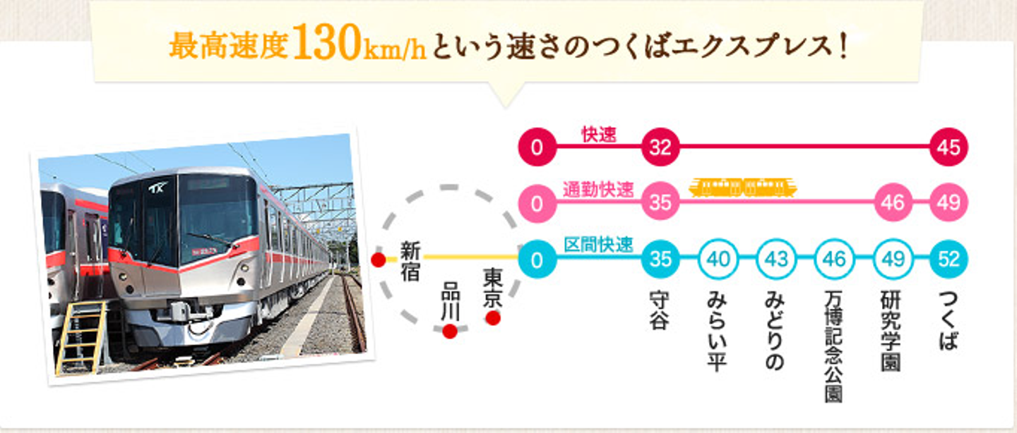 つくばエクスプレスを使えば、つくばから秋葉原まで最短45分でアクセスできます。